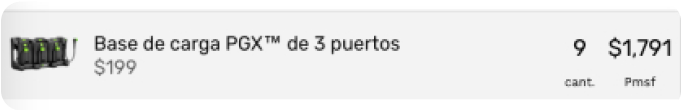 Revise el número de concentradores y bases de carga PGX™ que se requieren para cargar sus baterías durante la noche.